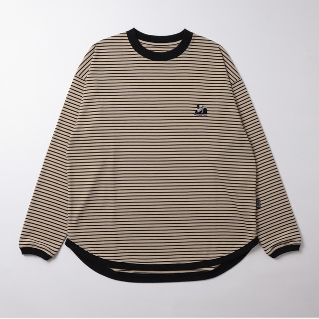 <MOUNTAIN DAISY PRODUCTS> Hike Border NAGASODE Tee 吸水速乾性に優れたボーダー長袖Tシャツ。 通年使いやすい厚みの生地を用いています。 身体のラインをカバーする、ふんわりとしたゆったりシルエット。 着丈は前後差があり、長めの後着丈はお尻周りが隠れるくらいのレングスにこだわりました。 また、長袖特有のカジュアル感が出すぎぬよう、パイピングを施し、 上品な印象に仕上げています。 “大人が似合うボーダー”をコンセプトにした、コーディネートしやすい1枚。 コットンのような風合いでデイリーユースにも最適です。 素材:ポリエステル100% 重量 :209g(01)/ 235g(02) model:164cm / Size 02