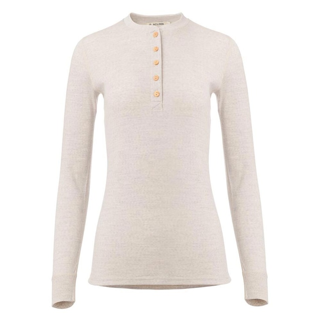<アクリマ> WarmWool Granddad Shirt (ウィメンズ) ACLIMA アンダーウェアの中で最もポピュラーなグランダッド・シャツです。19.5 マイクロンの 100% メリノウール繊維を使用し、200g/m2 ウェイトのニット構造をしています。0℃ 前後の環境でも最高のヒートバランスで快適な環境を生み出します。アルパインクライミングやスキー/スノーボードといった冬のアウトドア・アクティビティに最適です。最も人気のある素材でバラエティーに富んだ、さまざまなスタイルも特徴です。【レギュラー フィット】 平置き採寸データ(※メジャー採寸のため、誤差についてはご容赦ください。) S:着丈63cm 肩幅33cm 身幅44cm 袖丈60cm M:着丈64cm 肩幅34cm 身幅46cm 袖丈61cm MATERIAL:100% MERINO WOOL 19.5µ 200g/m² 重量:217g