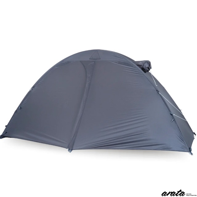 <アラタ> AX-130 Ver.3.1 ※ナイロン(ペグ無し) 山岳ソロテントの新基準 軽量さとオールシーズン仕様に耐える強度を両立 エンジニア目線の設計により、強度は折り紙付き。 日本ブランドの2人用山岳テントとしては、最大級の居住スペースの広さを誇る。 後室も設けてあるため、ザックの置き場も確保できます。 性能・居住性・価格、選ばない理由が見つかりませんね。 とにかくたくさんの工夫がされているので、詳細を知りたい方はarataのHPへどうぞ! Technical Spec arata AX-130 Version : 3.1 Seasons : 4-season Sleeping Capacity : 2-person Packed Size : 24 × 17 × 12cm(L x W x H) Minimum Trail Weight : 1075g Packed Weight : 1270g Floor Dimensions : 128cm x 210cm(L x W ) Peak Height : 102cm Number of Doors : 1 door(There is one other door for luggage.) Pole Material : Aluminum DAC Featherlite NFL 8.7 Inner Fabric : 10D breathable nylon Floor Fabric : 15D ripstop nylon silicone coated (PU1500) Rainfly Fabric : 15D ripstop nylon with silicone coating (PU1200 ) Contents : Tent body, Flysheet, Groundsheet, Tent poles, and Special storage bag
