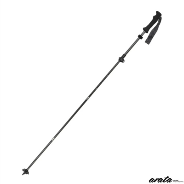 <アラタ> ATP-125(1本) 伸縮式ながらも高耐荷重を実現 カーボン製トレッキングポールの新基準 折りたたみかつ伸縮式で、長さ調整も可能なこちらのポール。 100㎝から125㎝までの調整が可能で、収納サイズは38㎝。 重量比強度に優れたカーボンを使用し、独自の連結方式で軽さと強度を両立。 連結部は7000系のアルミ合金を使用したネジとなっており、ネジ部分が補強材の役割も担っています。 中のコードは、ダイニーマ補強されたショックコードでできており軽量。 そして、連結部がネジのため、万が一コードが切れても使い続けられる優れものです。 スノーバスケットが付属しているのもありがたいですね。 Technical Spec ATP-125 Type:3-stage Folding Trekking Pole Weight:133g(Pole: 126g + Strap: 7g) Standard trail weight:158g(Pole + Strap + Tip cap + Basket) Snow hike standard weight:152g(Pole + Strap + Snow basket) Length: 100-125cm Folding Length:38cm Material:Carbon / EVA-grip Accsessory:Snow Basket / Rubber tip protector