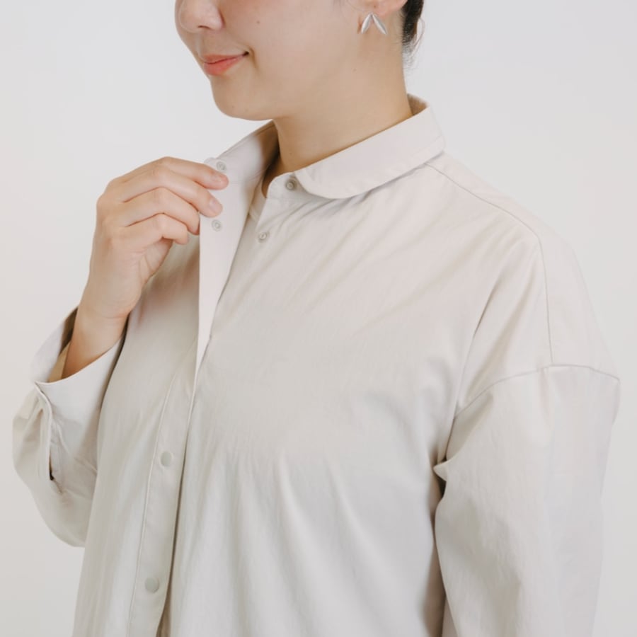小さな丸襟は、日除け、防風に立ち上げられます。