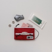 正面ポケットは両開きのため、ポケットティッシュ ケースとしても便利。持ち手ループつきなので、バックパックやサコッシュから取り出しやすく、洗面所やトイレへの持ち運びも容易です。