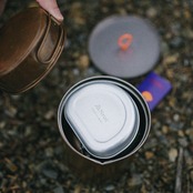 フォールダーカップ下部のテーバードシルエットを有効活用し同じ収納サイズでプラス1枚の小皿の携行を可能にしました。装着時も折り畳んだ状態のフォールダーカップの寸法内に収まり高さも2mmしか変わらず、フォールダーカップがスタッキングできるクッカーほぼ全て同時にスタッキングすることが可能です。