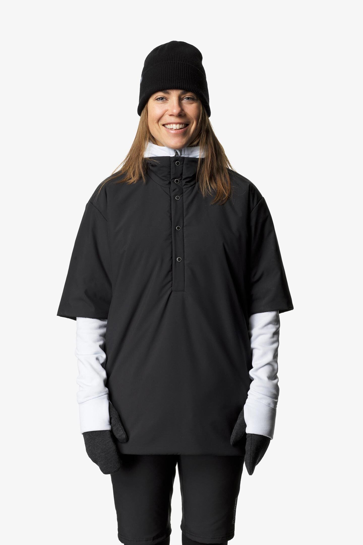 ベースレイヤーやミッドレイヤーに重ねれば上半身の主要な部分をカバーすることができ、長袖のインサレーションに比べて軽量でかさばらないことが特徴です。フロントジッパーとフードのないミニマリストデザインのためシェルの下にもレイヤリングしやすく、登山やスノーアクティビティ、キャンプや日常生活など、保温性を追加したいあらゆるシチュエーションで活躍します。