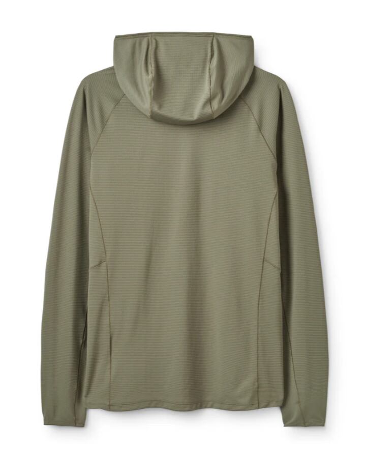 肌寒い朝のレイヤーとして、あるいはTシャツだけでは物足りないときの軽い防寒に最適な軽量フーディー。