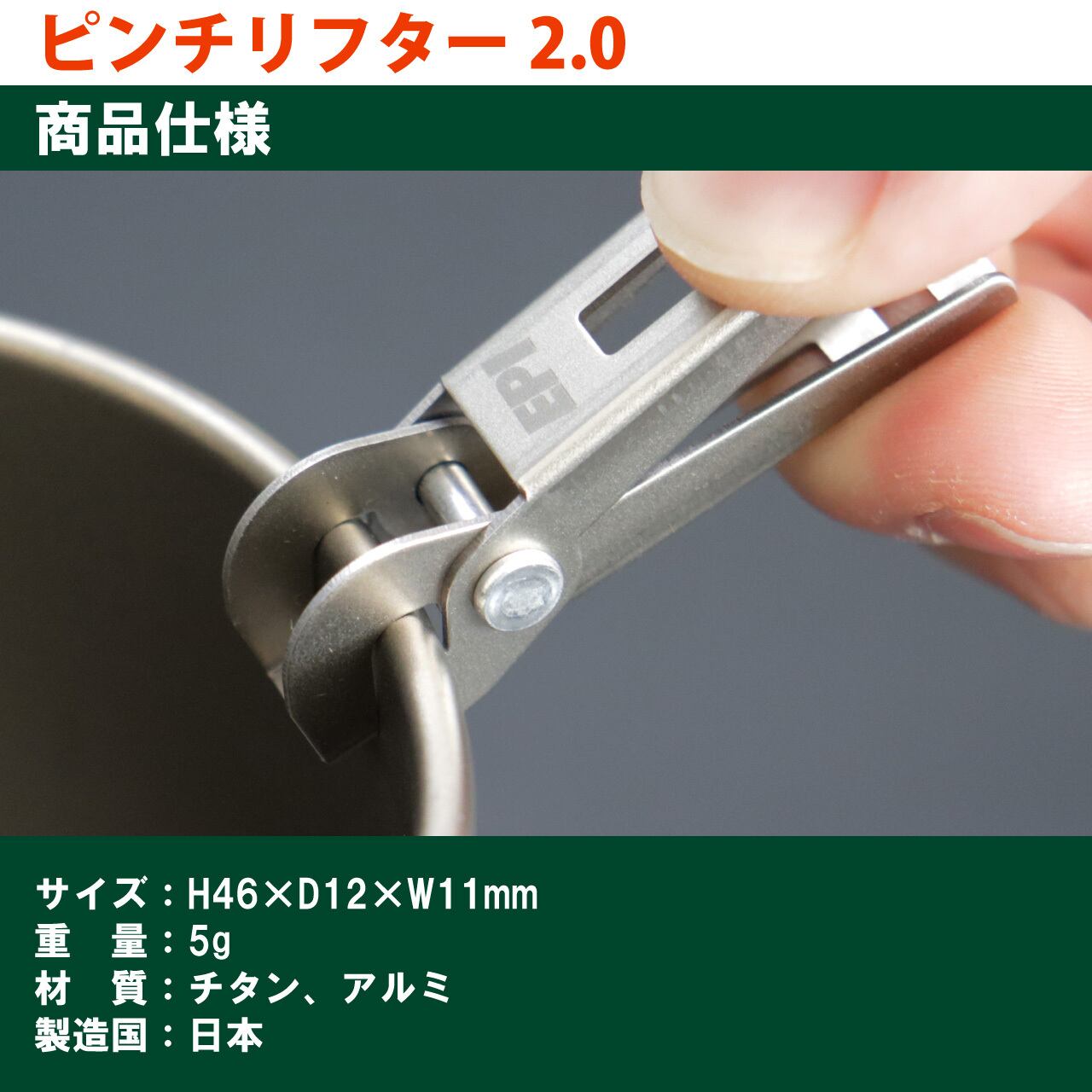 チタンの高い剛性と、マグの縁をしっかりと挟み込むことができる構造によって、従来のモデルと同レベルの保持力を有しています(600ml程度のクッカーまで持つことができます)。